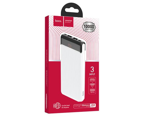 Портативный аккумулятор HOCO J59 Famous, 2A, 10000 мА⋅ч, белый