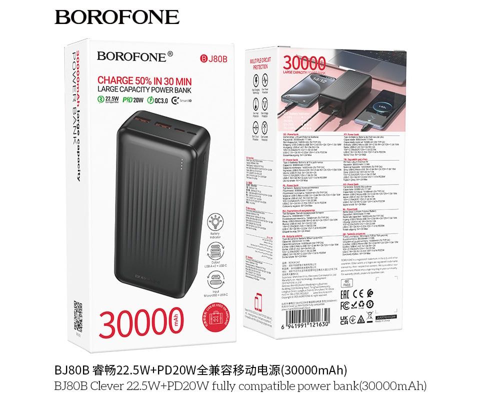Power Bank BOROFONE BJ80B Clever 22.5W+PD20W fully compatible power bank(30000mAh) black