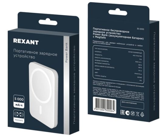 Power Bank REXANT 30-2053 5000 mAh, MagSafe, белое
