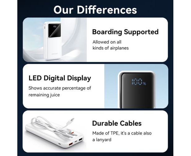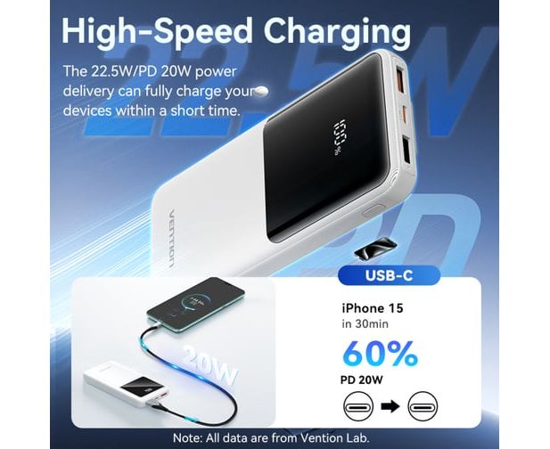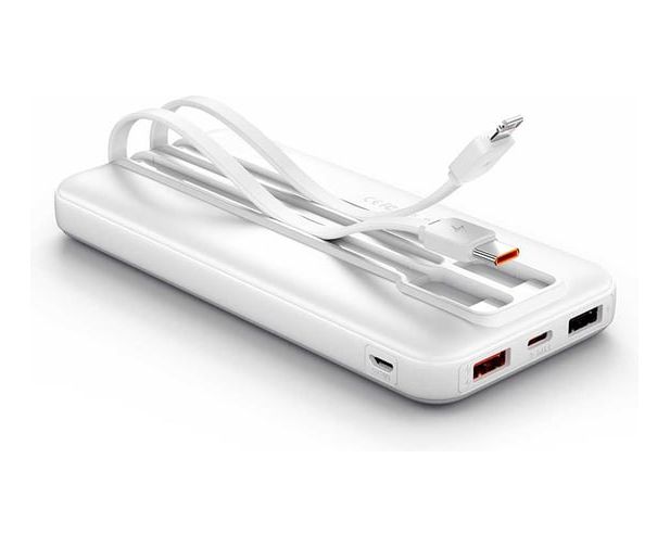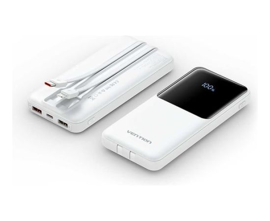 Power Bank Vention FHOW0 10000mAh (Micro-USB/C/A/A) со встроенными кабелями 22.5W Белый с LED Дисплеем