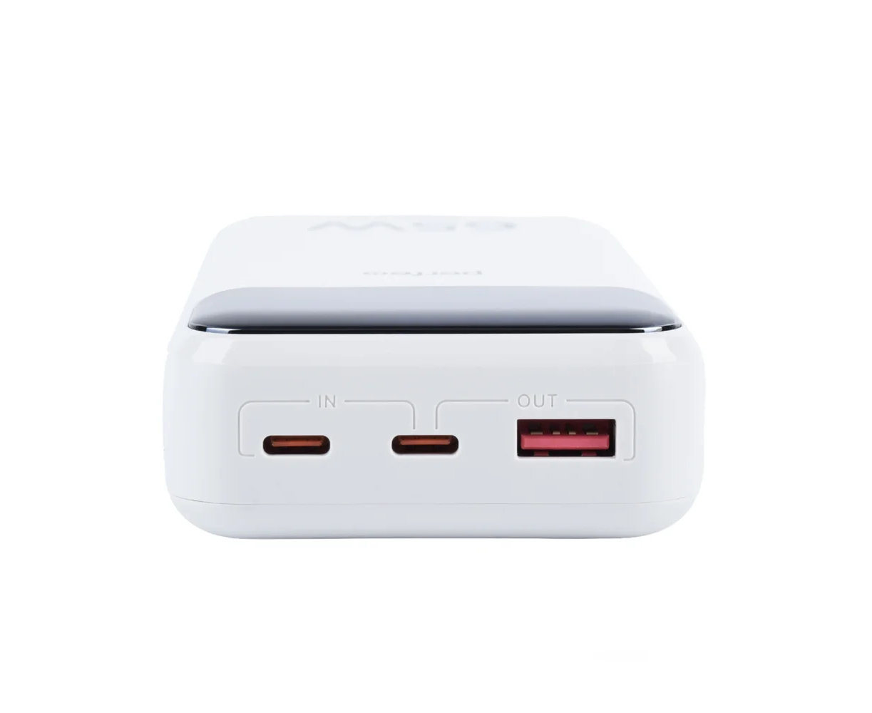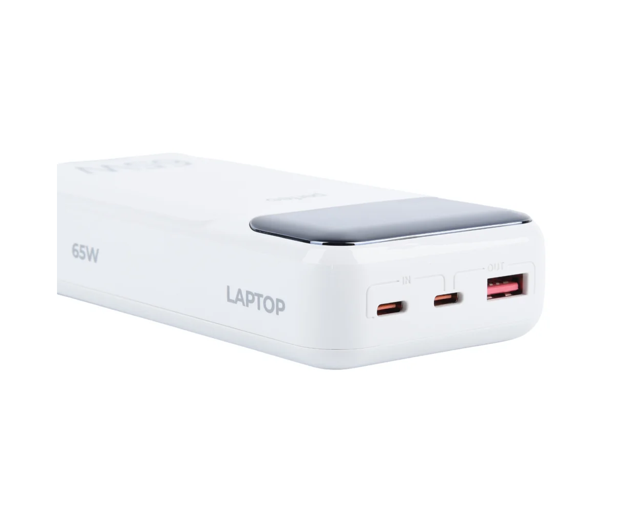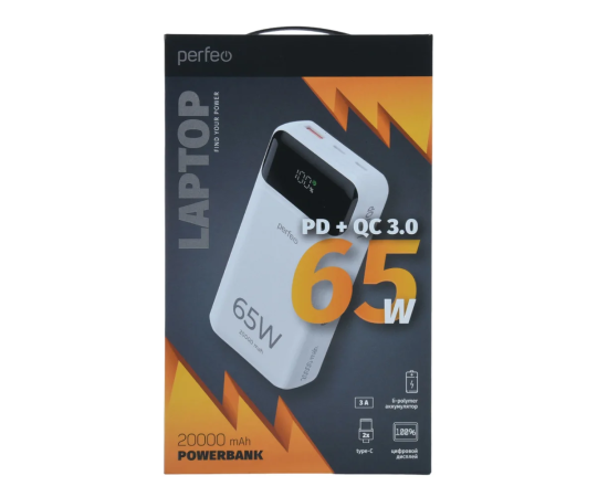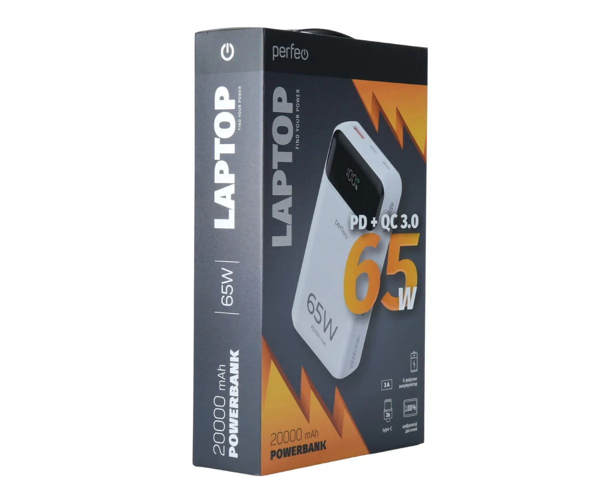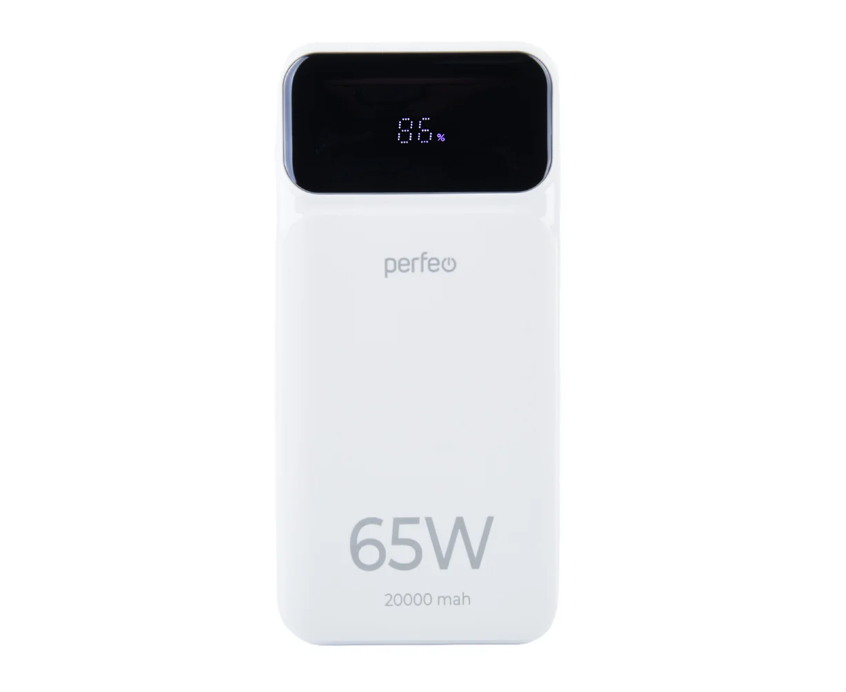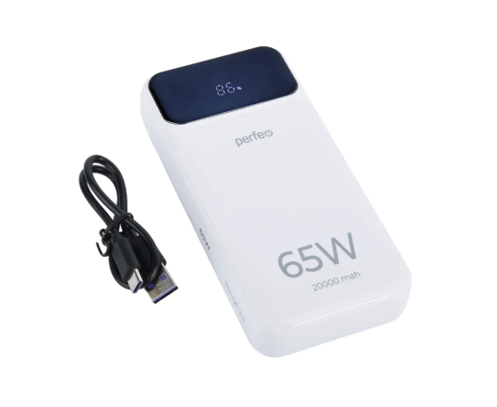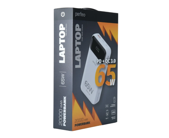 Powerbank Perfeo PF_E1637 Laptop 65W 20000mAh LED дисплей PD+QC 3.0 2Type-C 1 USB, max 65W White