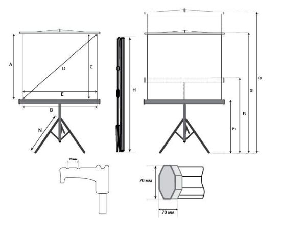 Размеры экрана (ШхВ) 180×180 см