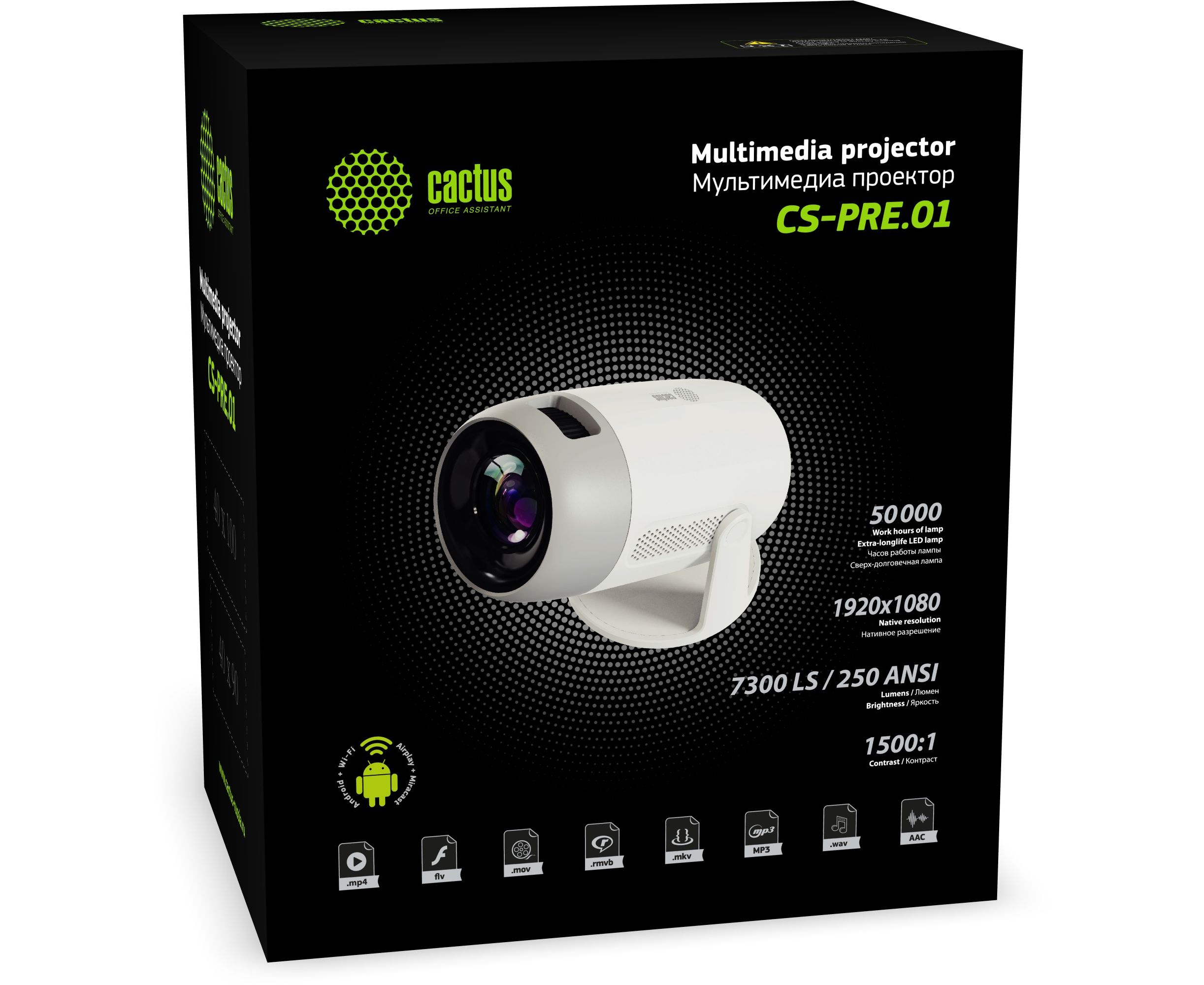Проектор Cactus CS-PRE.01WT.WUXGA-A Full HD-A LCD 7300Lm LS 250Lm ANSI (1920x1080) 1500:1 ресурс лампы:50000часов 1xUSB typeA 1xHDMI 1кг