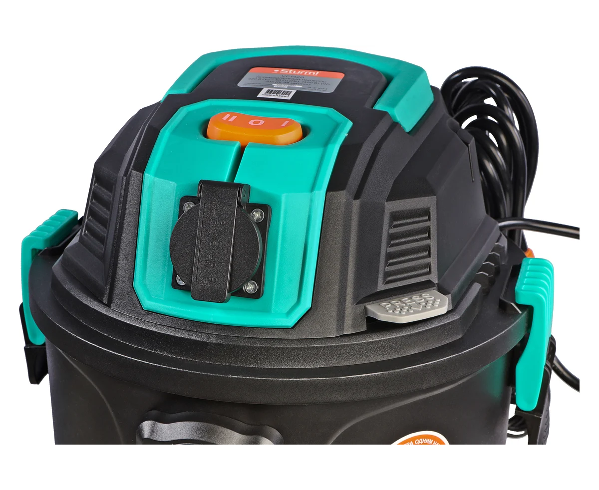 - Электророзетка с функцией синхронизации, с возможностью подключать электроинструменты мощностью до 2000Вт. Автоматическое включение пылесоса при работе электроинструмента