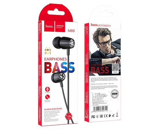 Проводные наушники с микрофоном внутриканальные Hoco M88 Jack 3,5 (black) (202596)