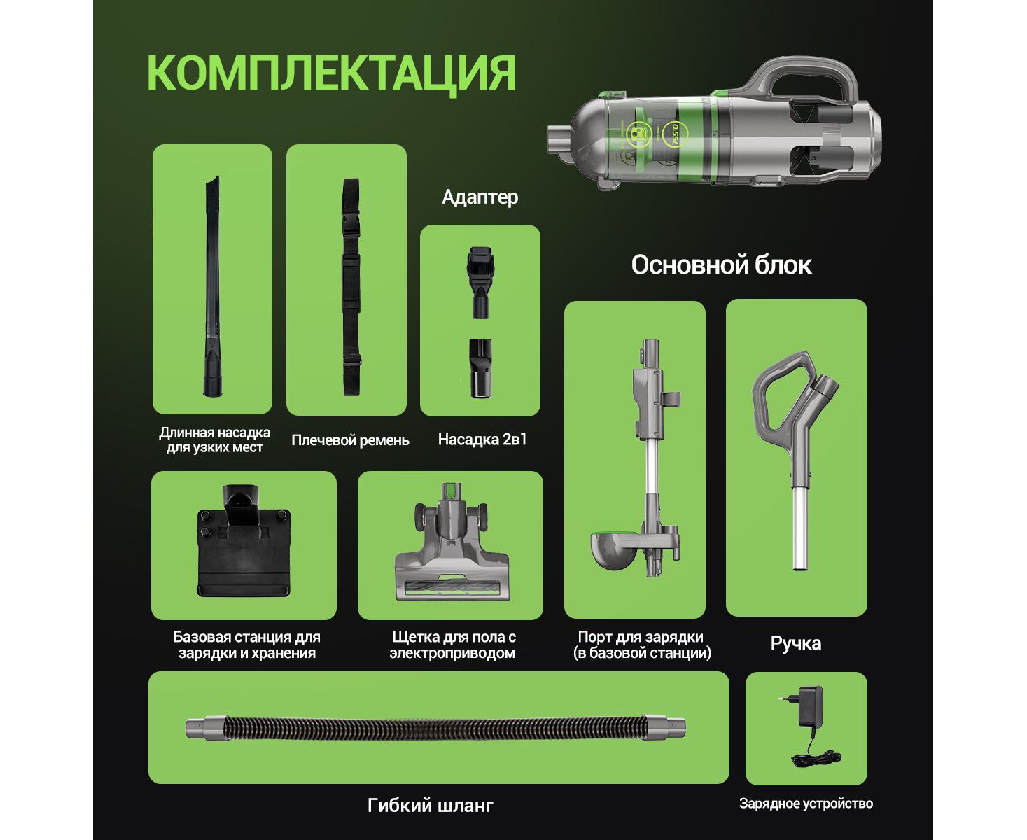 зарядное устройство, насадка для автомобиля, насадка для вычесывания домашних животных, насадка для мягкой мебели, насадка для твердых покрытий мебели, насадка для удаления шерсти, насадка для штор
