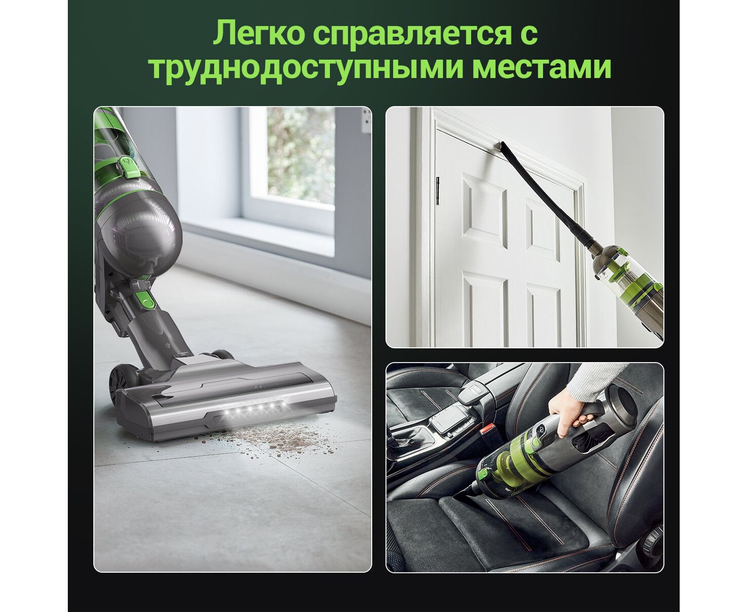 возможность использования в автомобиле, подсветка зоны уборки
