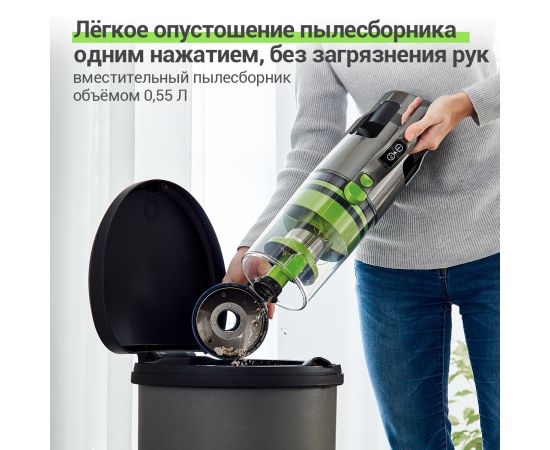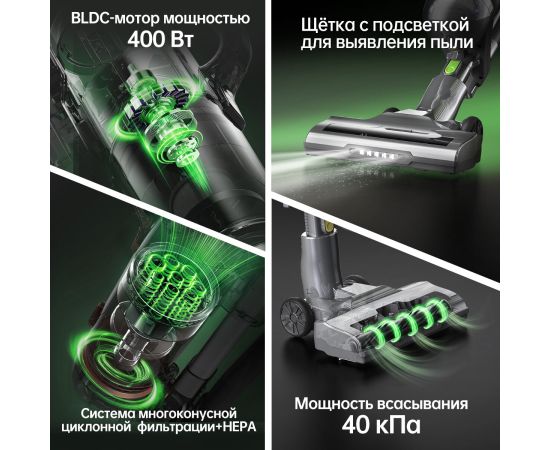 Этот вертикальный пылесос оснащен специальной системой освещения, которая обеспечивает отличную видимость даже в самых труднодоступных местах. Теперь вы сможете без проблем удалять пыль и грязь из-под мебели или в темных углах.