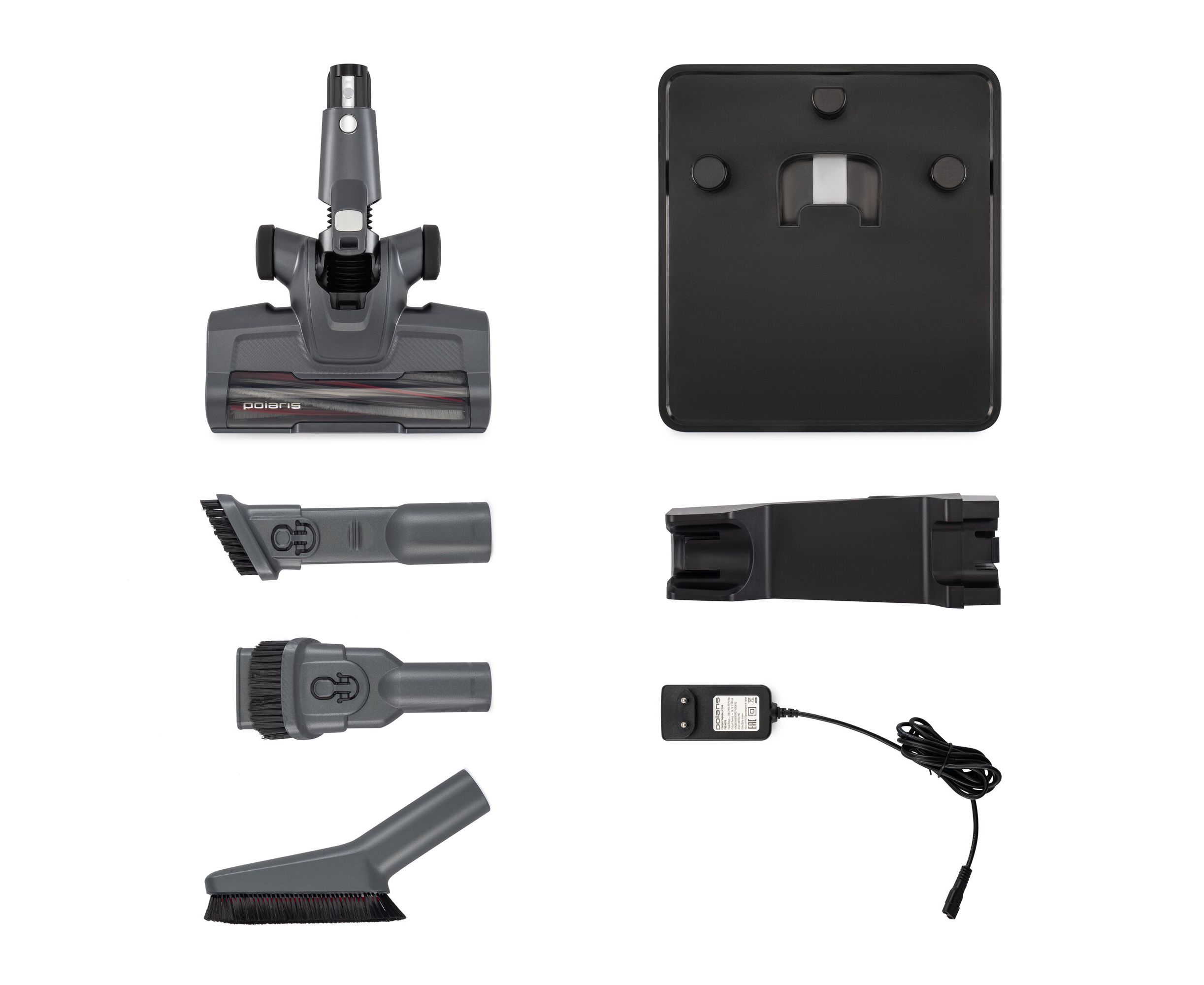 щелевая насадка, батарея, гибкая труба, инструкция по эксплуатации, мини турбощетка, напольная подставка-зарядный блок, насадка 2 в 1, насадка для влажной уборки, насадка для люстр и деликатных поверхностей, пылесос, труба, электрическая щетка для пола