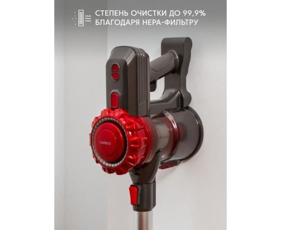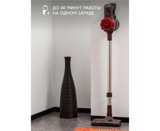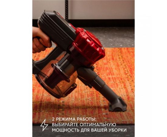 Вертикальный пылесос Rombica MyClean Uno Red (NHS16D01) имеет удобную механическую систему управления. Объем контейнера для сбора пыли составляет 0,8 л. Время автономной работы от Li-Ion-аккумулятора с емкостью 2200 мА*ч достигает 40 минут. Световой индикатор сообщает об уровне заряда батареи.