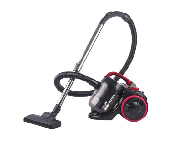 мощность: 1800Вт; с контейнером для пыли; мощность всасывания 300Вт, объем пылесборника 3л, с фильтром тонкой очистки, цвет: черный/бордовый