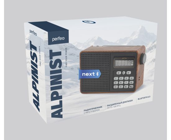 Радиоприемник Bluetooth цифровой Perfeo ALPINIST Next FM+ 70-108МГц/ MP3/ Bluetooth 5.3/ 18650/ Коричневый, (Арт. PF_D0574)