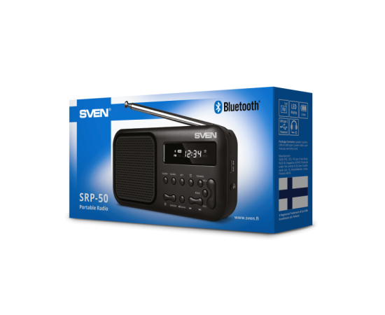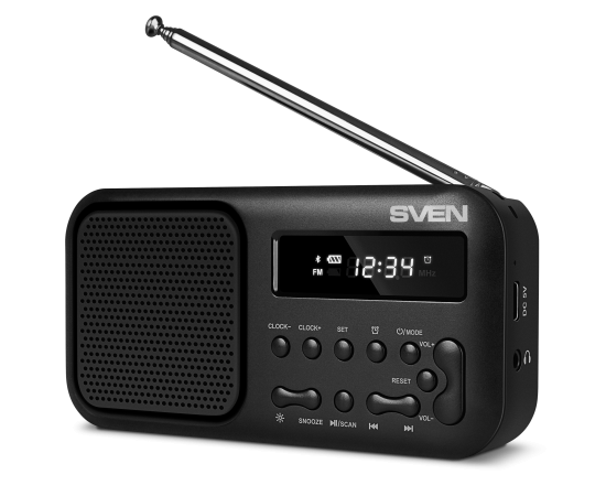 Радиоприемник SVEN SRP-50, черный (3 Вт, Bluetooth, FM, USB-C, 3.5мм jack, ,будильник, встроенный аккумулятор)