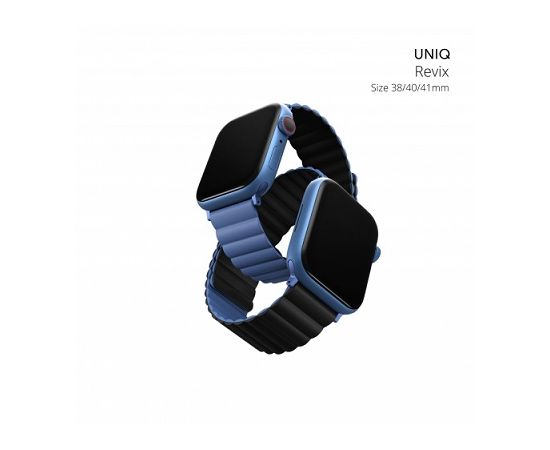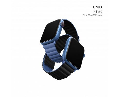 Ремень силиконовый Uniq REVIX для Apple Watch 41/40/38, цвет синий/черный (41MM-REVBLUBLK)