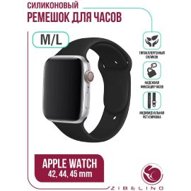 Ремешок силиконовый для Apple Watch 42мм, 44мм, 45мм (размер M/L) черный Эпл Вотч 42 ...