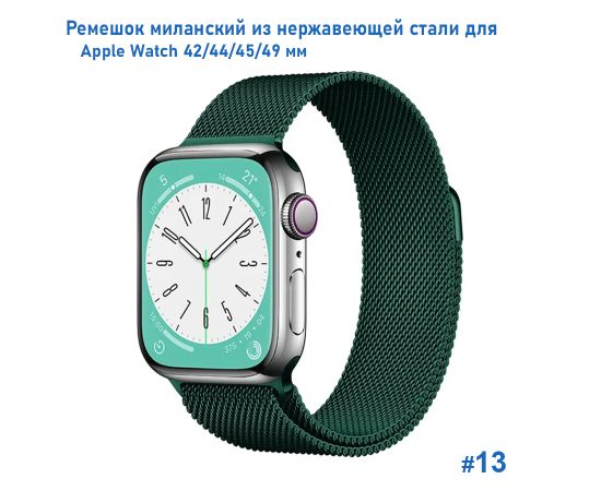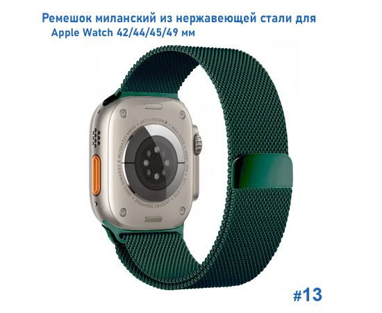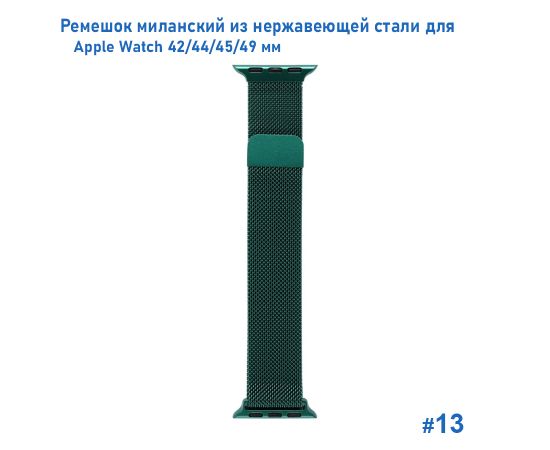 Ремешок миланcкий из нержавеющей стали Great Case Milanese Loop для Apple Watch 42/44/45/49 мм, 255мм, на магните, темно-зеленый (13)