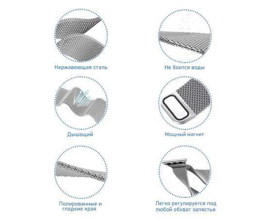 Ремешок Milanese Loop представляет собой шедевр аксессуара для Apple Watch, который удовлетворит самые изысканные вкусы. Вдохновленный классическим итальянским ремесленным искусством, он создан из прочной нержавеющей стали с уникальной плетеной текстурой, которая не только выглядит великолепно, но и обеспечивает повышенную прочность и гибкость. Магнитная застежка добавляет удобства в повседневной эксплуатации, позволяя пользователю с легкостью адаптировать ремешок для идеальной посадки без дополнительных инструментов.Каждый элемент этого ремешка был тщательно продуман для обеспечения комфорта и удобства. Он идеально ложится на запястье, создавая ощущение второй кожи, что делает его незаменимым аксессуаром как для активного отдыха, так и для элегантных мероприятий. Ремешок Milanese Loop — это не просто способ удержания часов на руке, это стильное украшение, которое подчеркивает личность владельца и его стремление к совершенству.