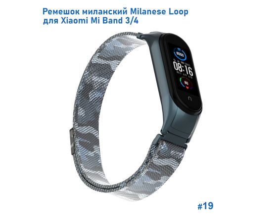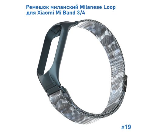 Ремешок миланcкий из нержавеющей стали Great Case Milanese Loop для Xiaomi Mi Band 3/4, 260мм, на магните, камуфляж+белый (19)