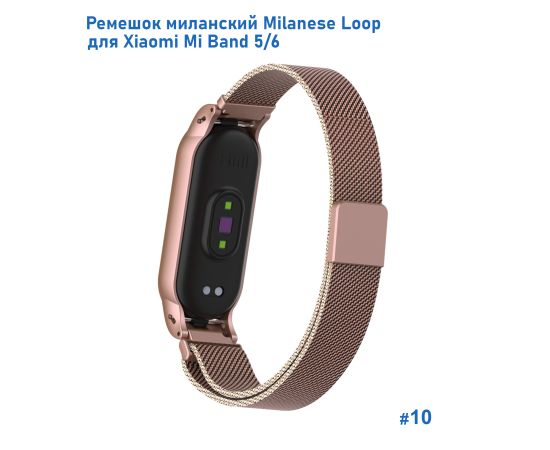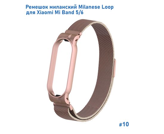 Ремешок миланcкий из нержавеющей стали Great Case Milanese Loop для Xiaomi Mi Band 5/6, 260мм, на магните, розовое золото (10)