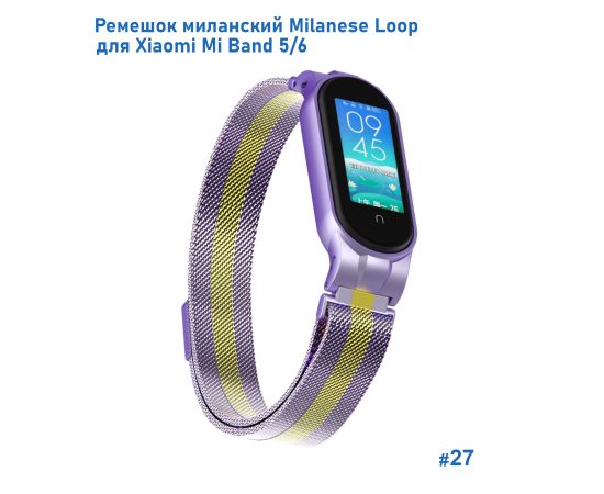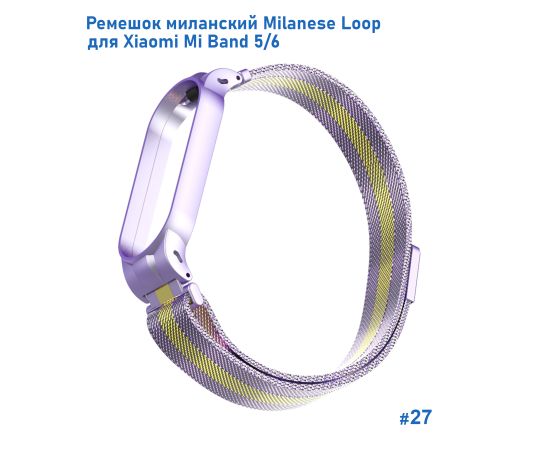 Ремешок миланcкий из нержавеющей стали Great Case Milanese Loop для Xiaomi Mi Band 5/6, 260мм, на магните, фиолетовый+золотой (27)