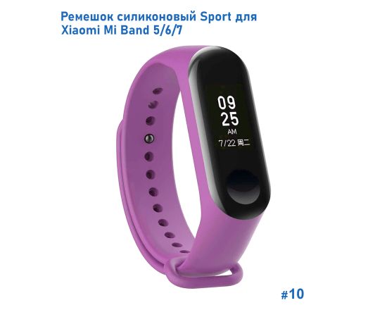 Ремешок силиконовый Great Case Sport для Xiaomi Mi Band 5/6/7, 250мм, на кнопке, сиреневый (10)