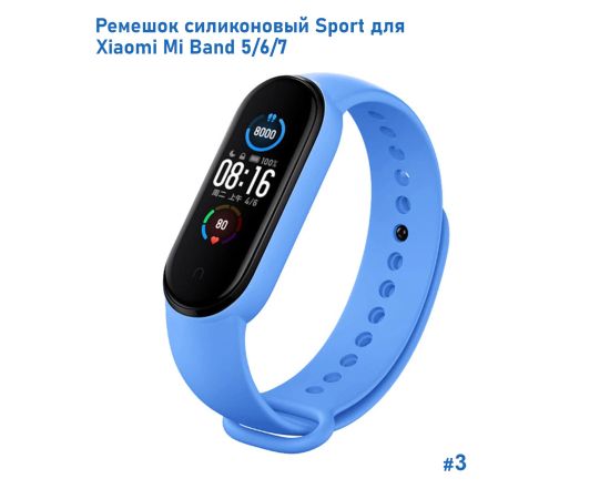 Ремешок силиконовый Great Case Sport для Xiaomi Mi Band 5/6/7, 250мм, на кнопке, лазурный (3)