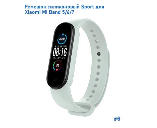 Ремешок силиконовый Great Case Sport для Xiaomi Mi Band 5/6/7, 250мм, на кнопке, светло-бирюзовый (6)