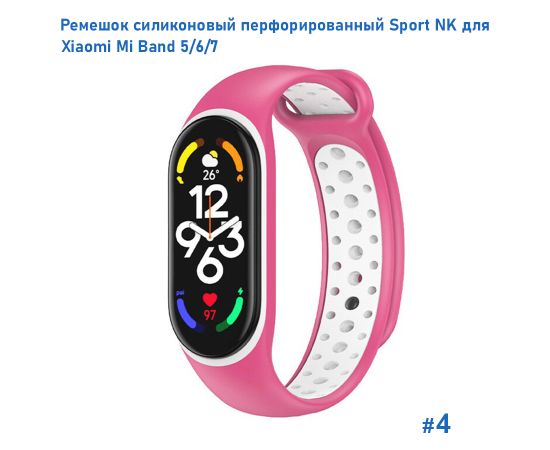 Ремешок силиконовый перфорированный Great Case Sport NK для Xiaomi Mi Band 5/6/7, 250мм, на кнопке, розовый+белый (4)