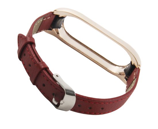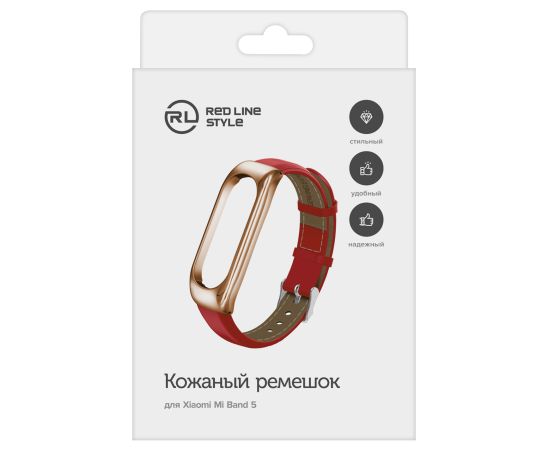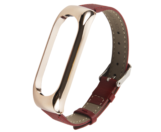 Ремешок кожаный для фитнес-браслета Xiaomi Mi Band 5/ Mi Smart Band 6, красный