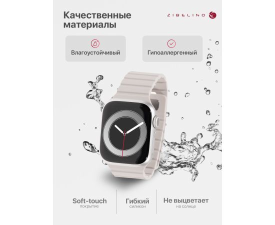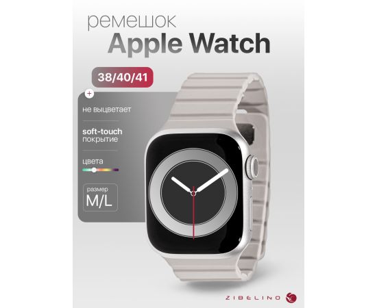 Ремешок магнитный силиконовый для Apple Watch 38mm, 40mm, 41mm (размер M/L) с застежкой штифтом, бежево-серый (Эпл Вотч 38 мм 40 мм 41мм)