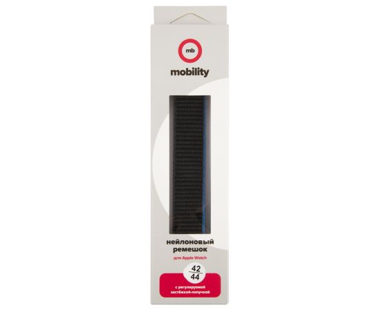 Ремешок нейлоновый MB для Apple watch – 42-44 mm (S3/S4/S5 SE/S6), уголь с сине-серым краем