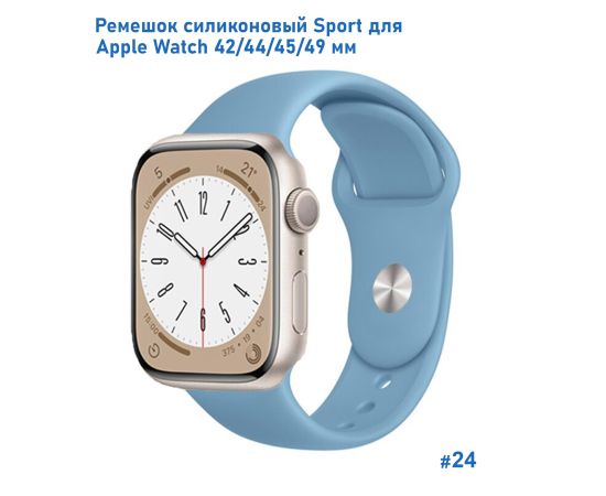 Ремешок силиконовый Great Case Sport для Apple Watch 42/44/45/49 мм, 235мм, на кнопке, лазурный (24)