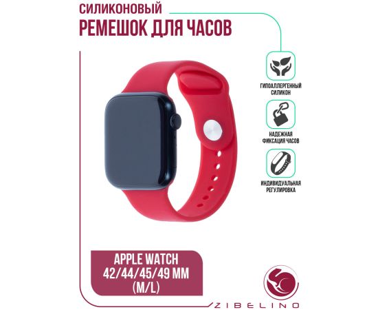 Ремешок силиконовый для смарт часов Apple Watch 42мм, 44мм, 45мм, 49мм (размер M/L) малиновый (Эпл Вотч 42мм 44мм 45мм 49мм)