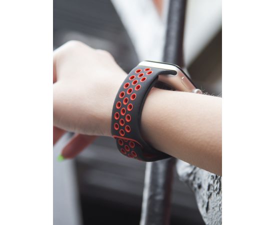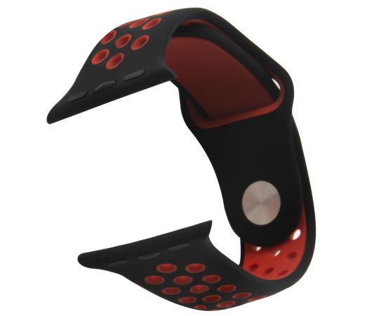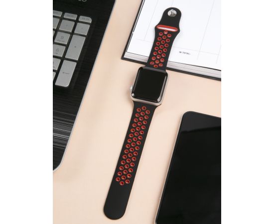 Ремешок силиконовый двухцветный для Apple watch - 42-44 mm (S3/S4/S5 SE/S6), черно-красный