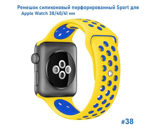 Ремешок силиконовый перфорированный Great Case Sport NK для Apple Watch 38/40/41 мм, 225мм, на кнопке, желтый+синий (38)