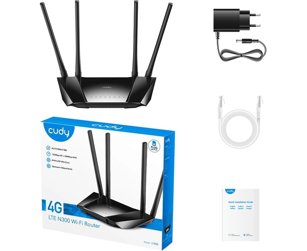 Роутер беспроводной Cudy LT400 N300 10/100BASE-TX/4G cat.4 черный