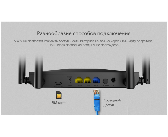 Подключение к интернету (WAN) Ethernet RJ-45, SIM-карта