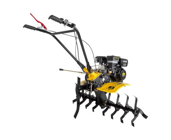 двигатель сельскохозяйственной машины в сборе с рамой, рукоятка управления, комплект кронштейнов и лезвий для фрез в разборе, удлинитель рукоятки переключения, комплект инструмента для сборки, крепежный комплект, защитные крылья, кронштейны для крепления крыльев, паспорт изделия, упаковка