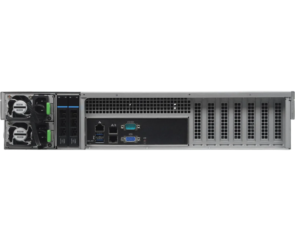 Корзина на 8 дисков SAS/SATA 2.5/3.5 с пассивным backplane. Для поддержки дисков SAS требуется установка RAID-контроллера. Тыловая корзина на 2 системных диска SATA 2.5. Рельсы в комплекте.