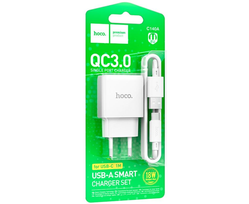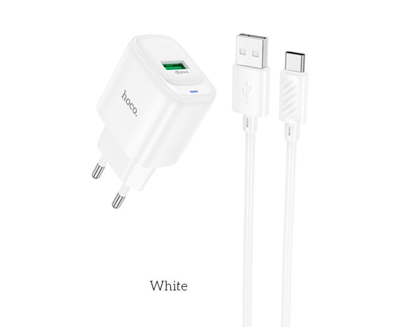 Сетевое зарядное устройство HOCO C140A/ СЗУ + Кабель Type-C 1m/ QC 3.0/ 1 USB/ Выход: 18W/ Белый