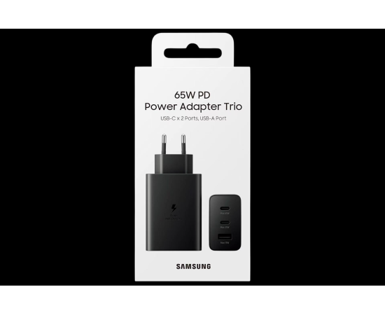 Сетевое Зарядное Устройство Samsung 65W PD adapter trio USB-Cx2 Ports, USB-A port black Черный ( EP-T6530)