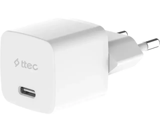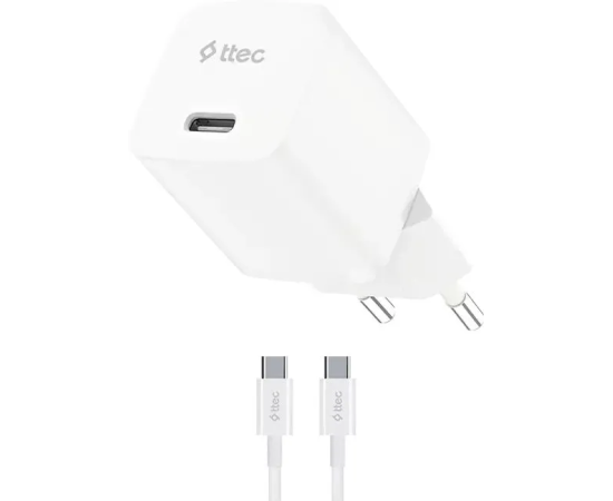 Сетевое зарядное устройство TTEC 2SCG20CB SmartCharger GAN 20W USB-C PD Travel Fast Charger с кабелем USB-C-USB-C 60W, длина кабеля 120см белый