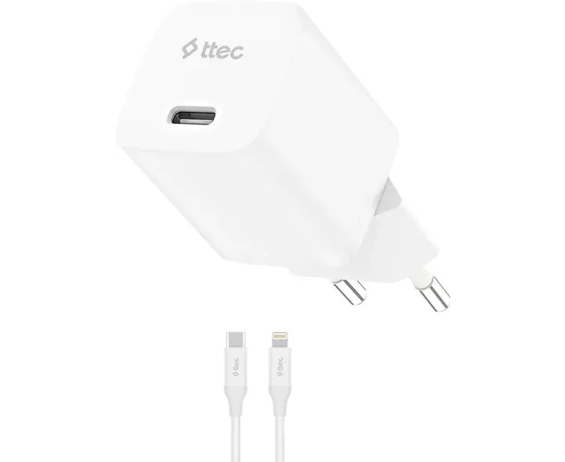 Сетевое зарядное устройство TTEC 2SCG20LB SmartCharger GAN 20W USB-C PD Travel Fast Charger с кабелем USB-C-Lightning, длина кабеля 150см белый