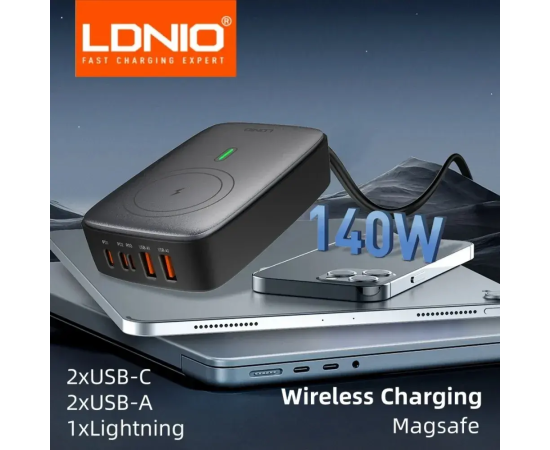 Встречайте новинку 2024 года - турбо зарядка LDNIO мощностью 140 Ватт. Универсальное настольное зарядное устройство LDNIO 140W – это надежный помощник в эксплуатации самых разных гаджетов, обладает технологией GUN. Главной отличительной особенностью, которой это зарядное устройство выделяется среди других, является наличие 17 мощных магнитов, т. е. оно поддерживает беспроводную зарядку. Сверхбыстрая зарядная станция 140 W позволяет заряжать до шести устройств одновременно с различными параметрами емкости, такие как планшеты, ноутбуки (macbook, ipad), смартфоны (андроид, айфон), аккумуляторы для квадрокоптеров (DJI). Турбо-зарядка имеет 5 разъемов: 2 USB-A, 2 USB-C, 1 Lightning. Сама зарядка имеет компактные габариты 11,8*7,5*3,5 см. Корпус устройства выполнен из огнеупорного материала, а также остается устойчивым к механическим повреждениям, таким как царапины, сколы, трещины или вмятины. Универсальное зарядное устройство 140W 6 в 1 отлично подойдет для зарядки гаджетов и девайсов таких мировых брендов, как Iphone, Samsung, Huawei, Xiaomi (Android) и других.