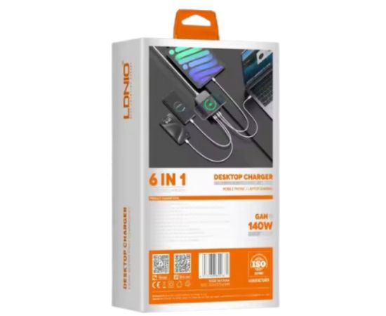 Сетевое ЗУ GaN LDNIO Q4010/ / Беспроводная зарядка Qi 15W/ PD+PPS/ Выход: 3.3-20V, max 140W/ Серый
