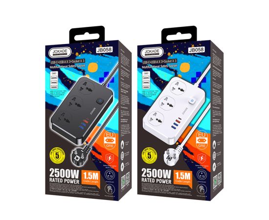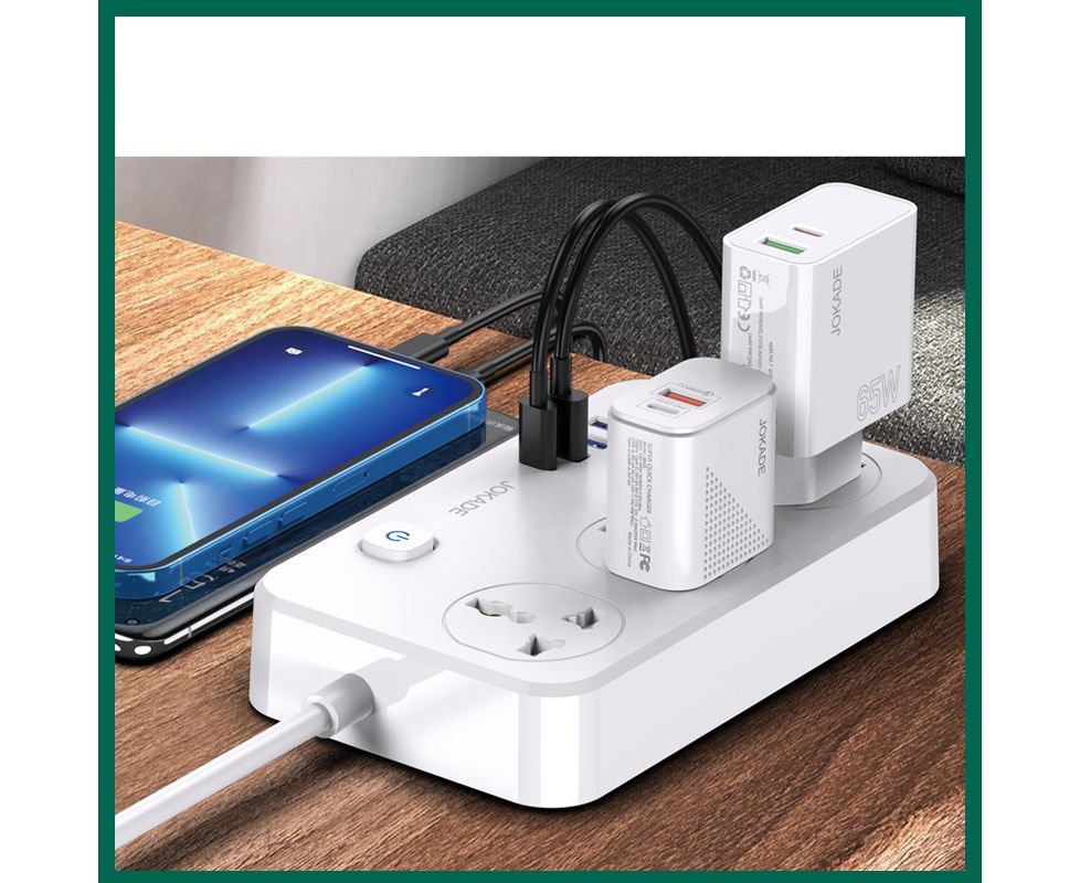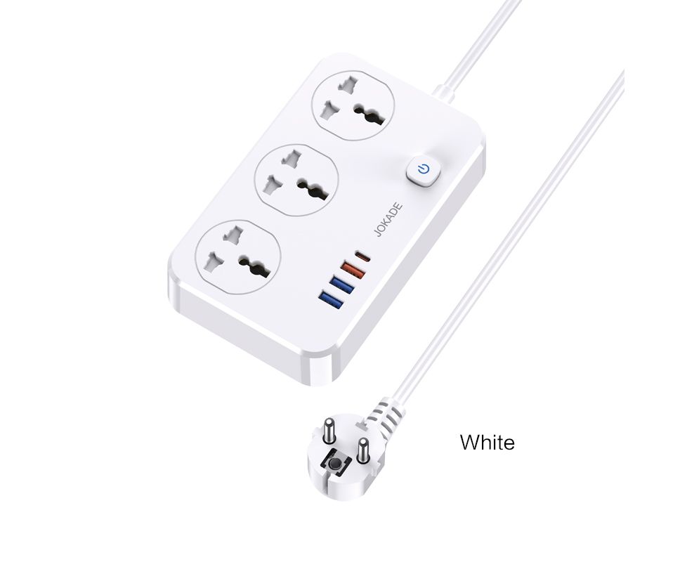 Сетевой фильтр JOKADE JB058 3 розетки + 3 USB + 1 USB-C White