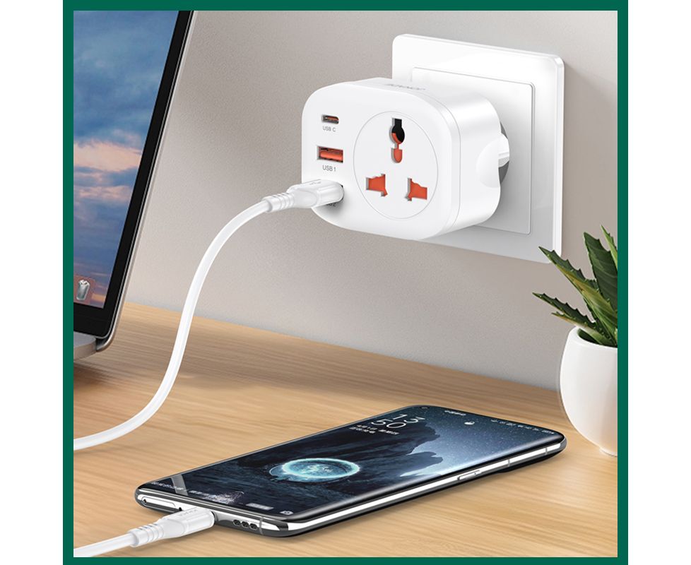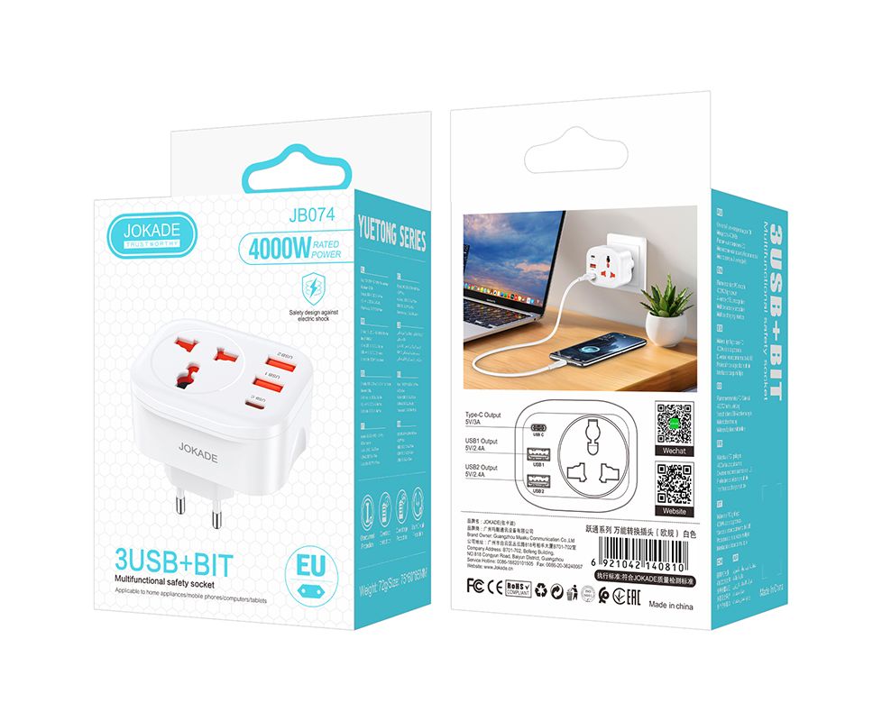 Сетевой фильтр JOKADE JB074 1 розетка + 2 USB + 1 USB-C White