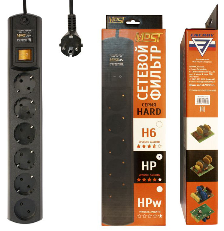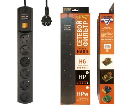 Сетевой фильтр Most HP 5м (6 розеток) черный (коробка)