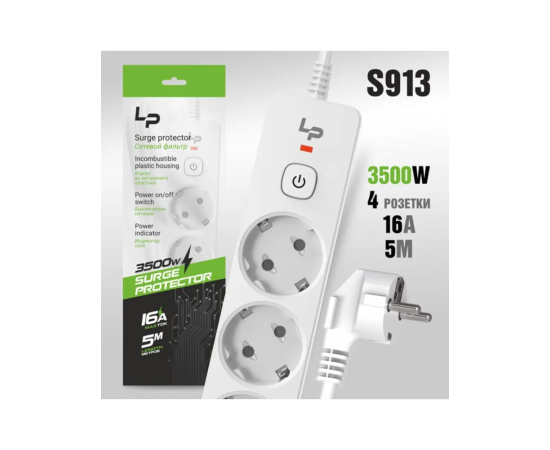 Сетевой фильтр-удлинитель Live-Power LP5125 4розетки С/З 16А с выкл. 5м white