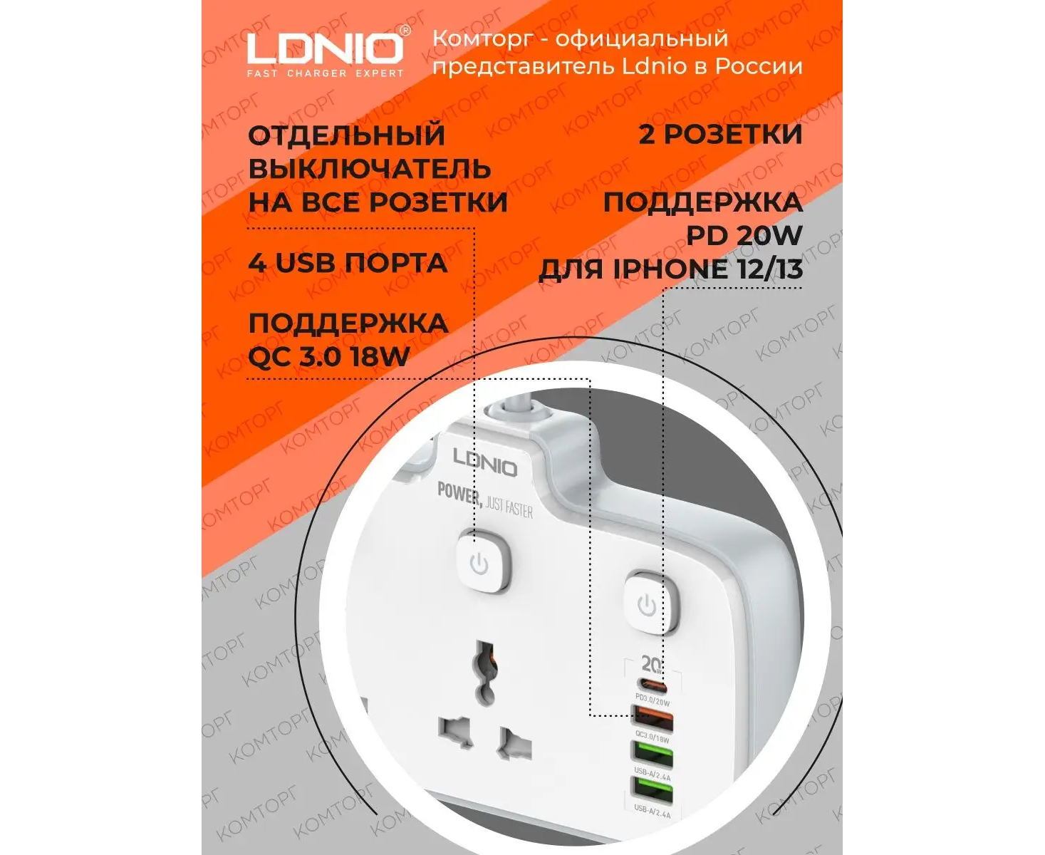 Комплектация Сетевой разветвитель LDNIO SC2413